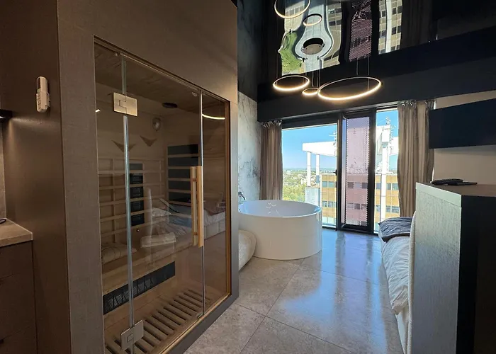 Апартаменты Panorama Level 26 S P A Z Wanna I Sauna Katowice с видом на город находятся в Катовице, на расстоянии 6 км от Никишовца. Гости могут воспользоваться Wi-Fi и парковкой, которая находится на территории.
